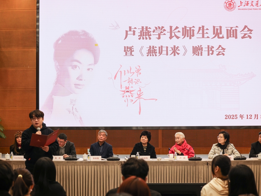 12月8日,百岁传奇影后、上海交大1945级财务管理专业校友卢燕,携家人好友重返母校。一场别开生面的师生见面会暨《燕归来》赠书会在闵行校区文博楼会议中心举行。卢燕与师生们齐聚,共忆在校时光,畅谈艺术人生,传递跨世纪的赤子情怀与文化担当。