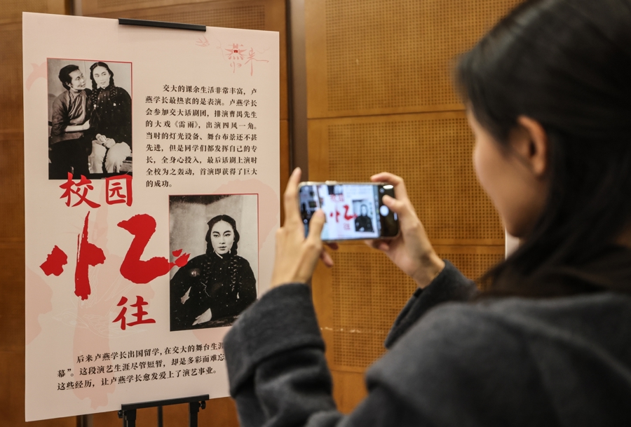 “到家”——上海交通大学藏卢燕校友珍档展,首次集中展示卢燕在校期间的学籍档案以及捐赠学校的珍藏:张大千手书的菜单,梅兰芳、冯友兰致卢燕的赠言本,韩美林的画,奥黛丽·赫本相赠的粉盒,莱昂纳多·迪卡普里奥、李安导演致卢燕的贺卡,电影《董夫人》、话剧《普莱飒大饭店》剧本手稿等,每一件藏品都诉说着独特的故事,散发着历经时光磨砺后的璀璨光芒。